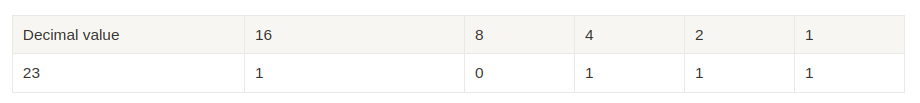Let's convert 23 into binary: