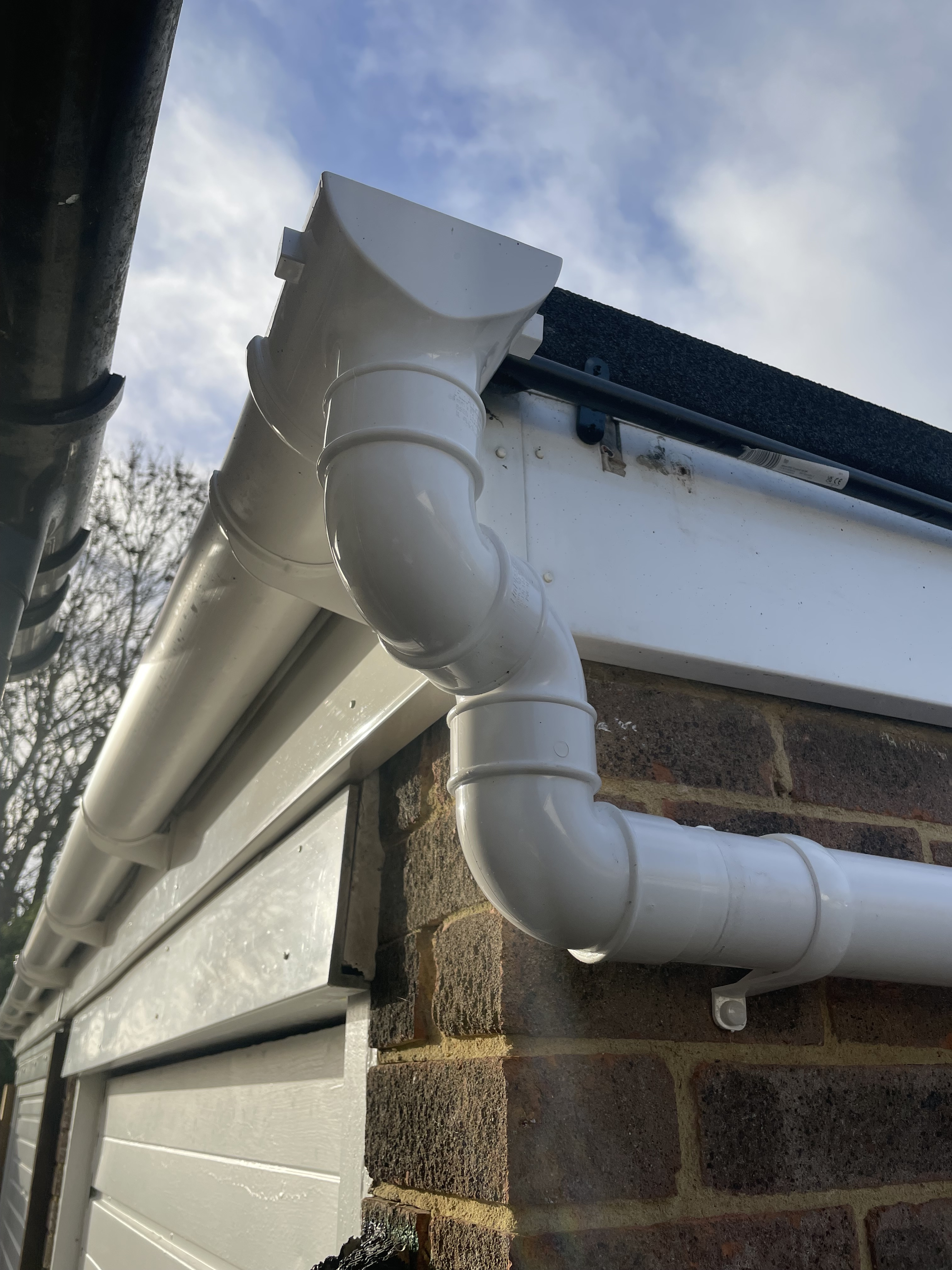 Overall, however I think it looks much neater as well as being more satisfying from an engineering perspective. The white half-round gutters blend in nicely with the neighbours' and look a lot cleaner.